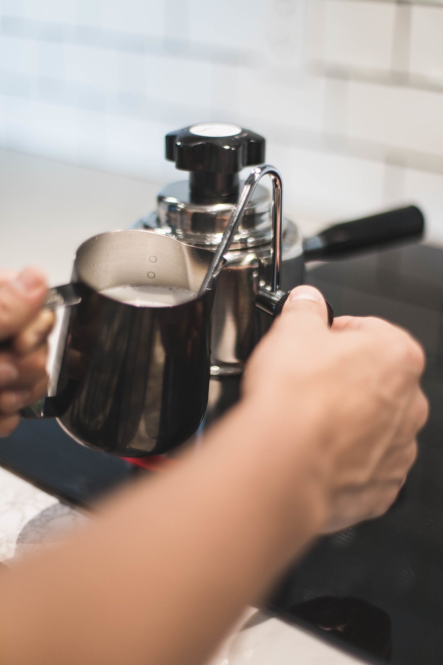Le pichet à lait 12 oz est parfait pour cuire à la vapeur et faire mousser la mousse de lait pour un simple ou double cappuccino ou latte macchiato.